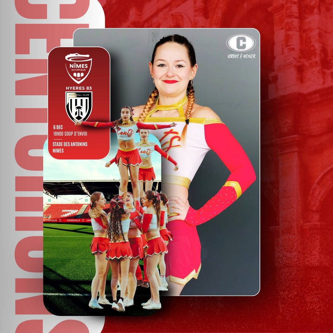 Ce samedi 6 décembre, nos cheerleaders seront présentes au stade des Antonins pour animer la rencontre entre le Nîmes Olympique et le Hyères 83 FC, coup d’envoi à 18h !